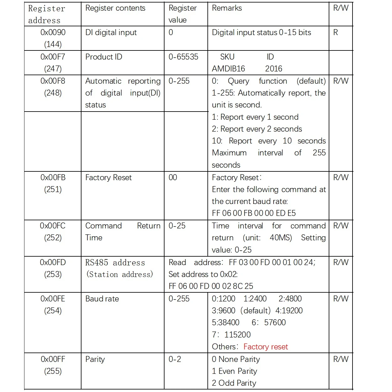 AMDIB16 16DI NPN PNP Digital Input Module with RS485 Isolated Communication for PLC Expansion Board