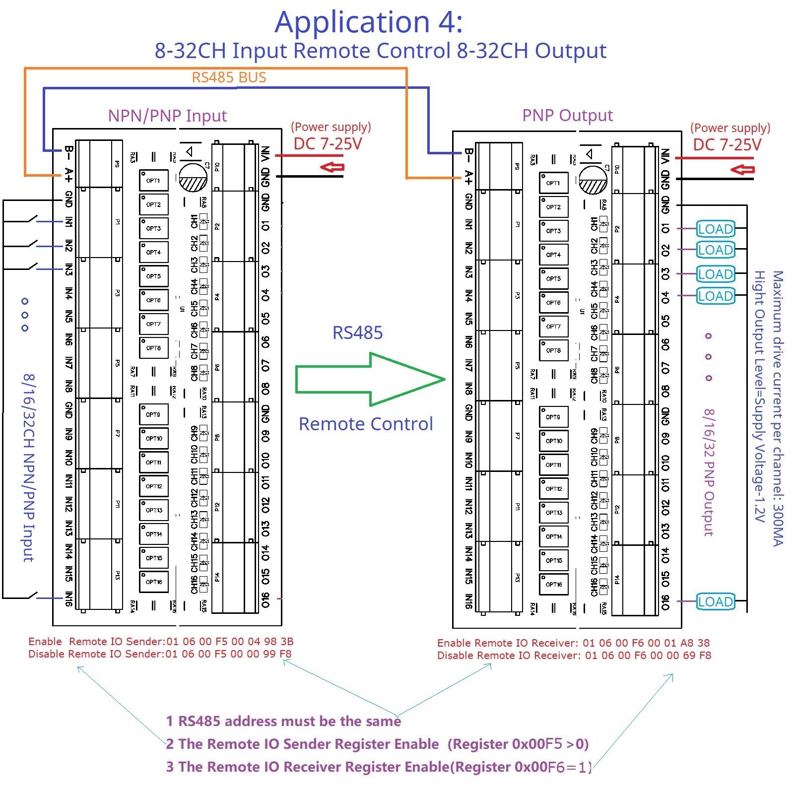 6 The input port can remotely control the output port of another board through the RS485 bus