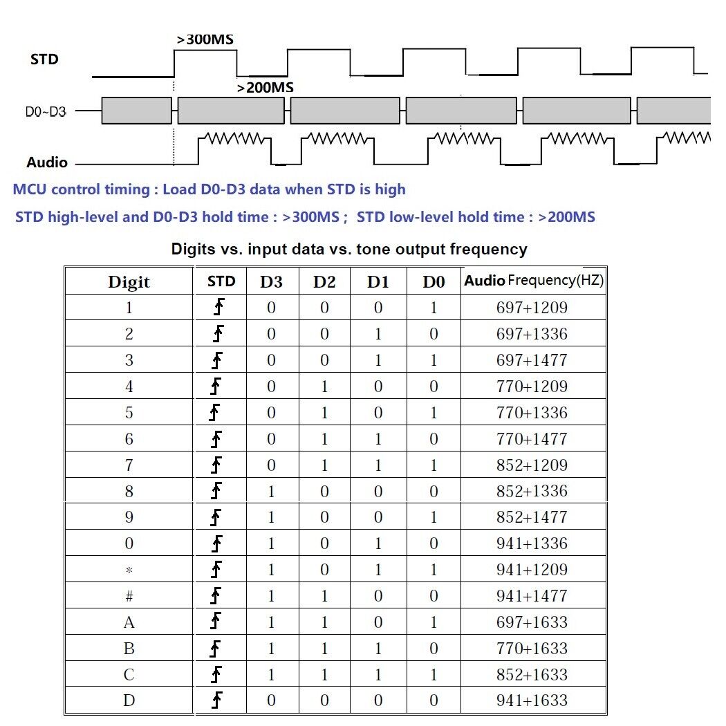 MCU(OR Dialing keyboard ) to generate 16 dual tones from the Audio 1/2 . 16 dual tones is ''1234567890#*ABCD''