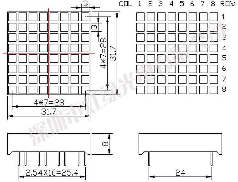 Product Name: Arduino Demo Code Square Matrix LED 8x8 Red Dot display Module for Animation LED gift