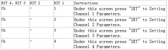 2.Press "SET" button to enter "channel select" interface. In the "channel select" screen, then press "++"/"-" button to select channel to operate (relay). Press "OK" button will exit "channel select" screen, and save the current parameters. Press "SET" button into "parameter settings" interface.