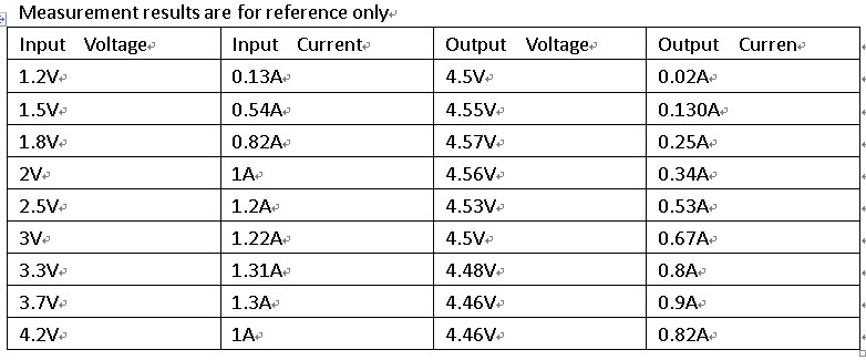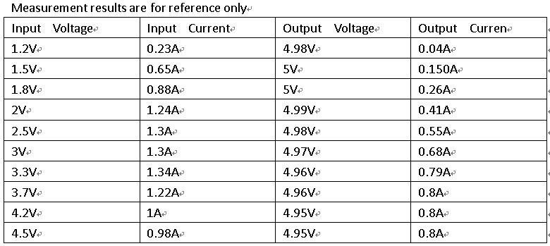 Input voltage DC 1 ~ 3.7V, output DC 3.7V(+-5%)