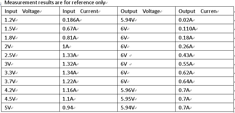 Input voltage DC 1 ~ 6V, output DC 6V(+-5%)