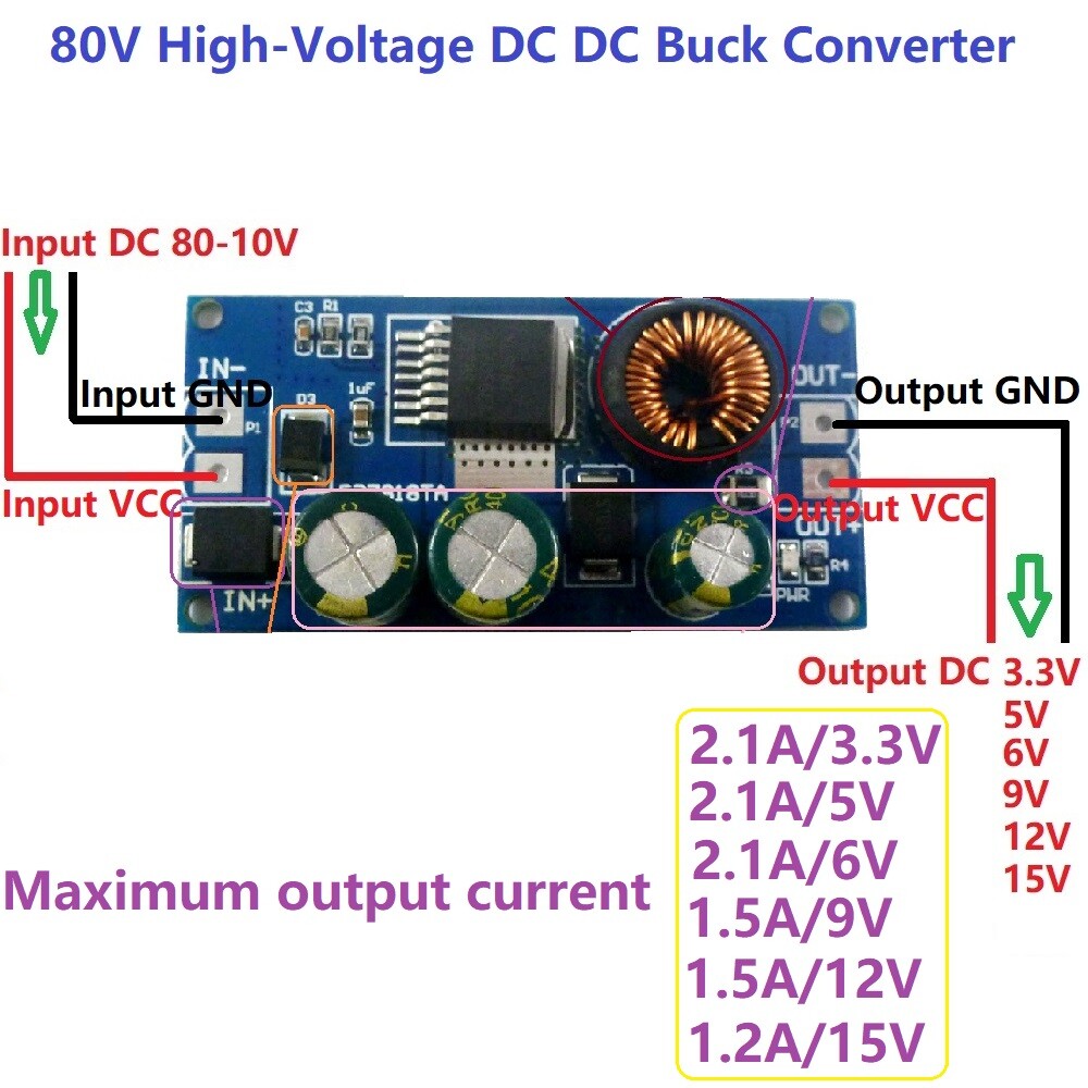 1 PCS 2.1A High-Voltage DC-DC Converter Buck Step-Down Regulator Module 8-80V to 15V 12V 9V 6V 5V 3.3V