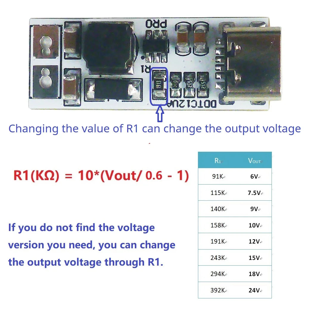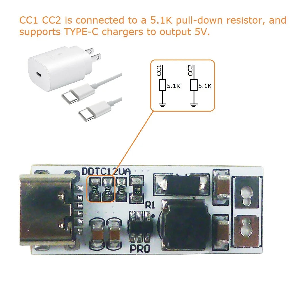 DDTC12UA_PRO Full Function Type-C PD QC USB 5V to 5V to 6V 9V 12V 15V 24V 9W DC-DC Boost Converter for Arduino Smart Home Speaker
