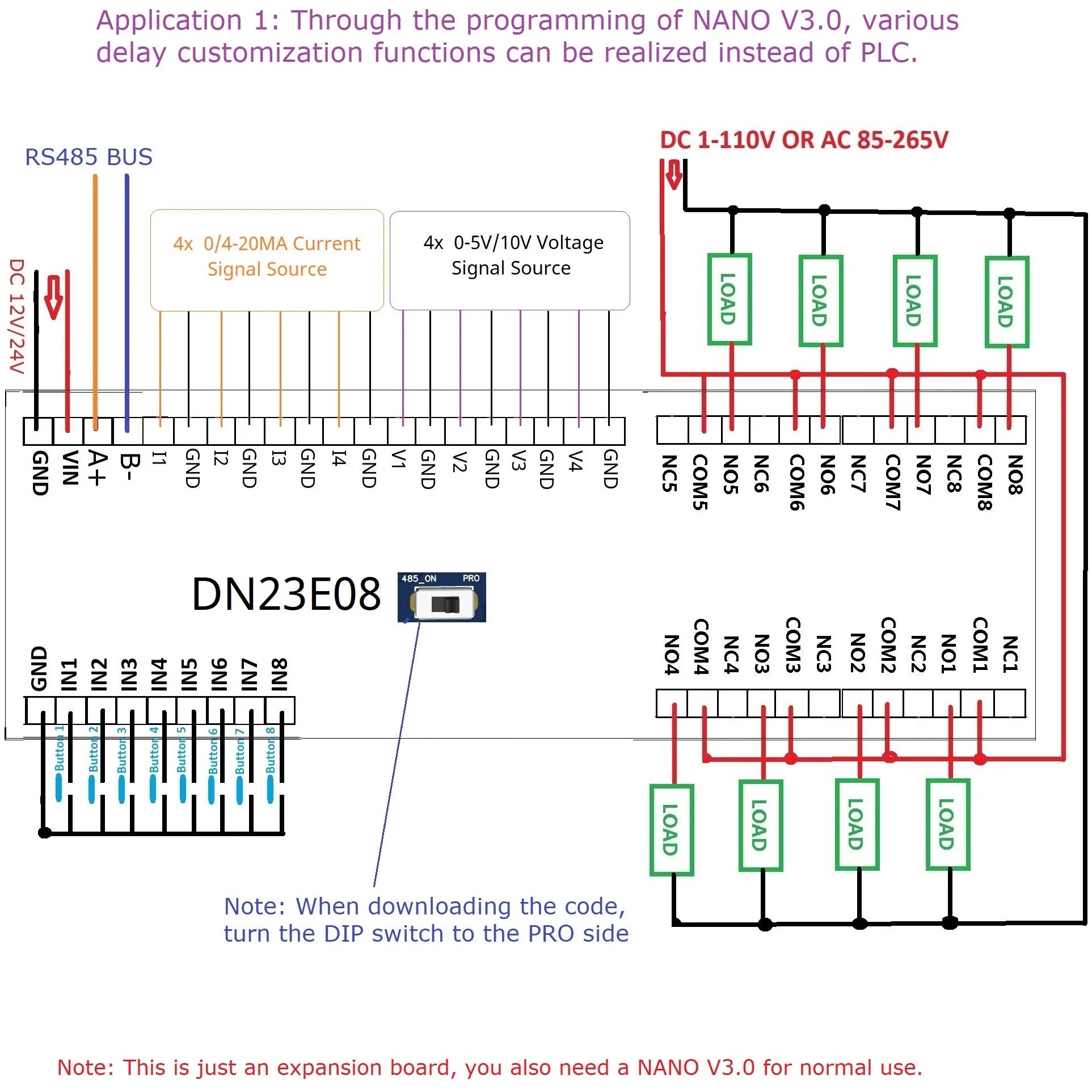 Note: DN23E08/DN24F08 can not work independently, must be under the control of the NANO V3.0 board to work,If you do not have a NANO V3.0 board, purchase it separately or purchase a kit with NANO V3.0