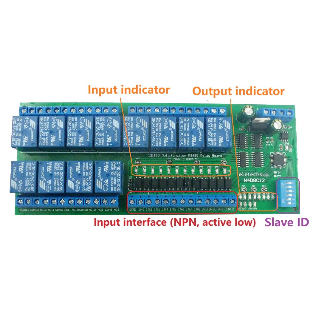 1PCS DC 12V/24V 12 Input & 12 Output RS485 Relay Module