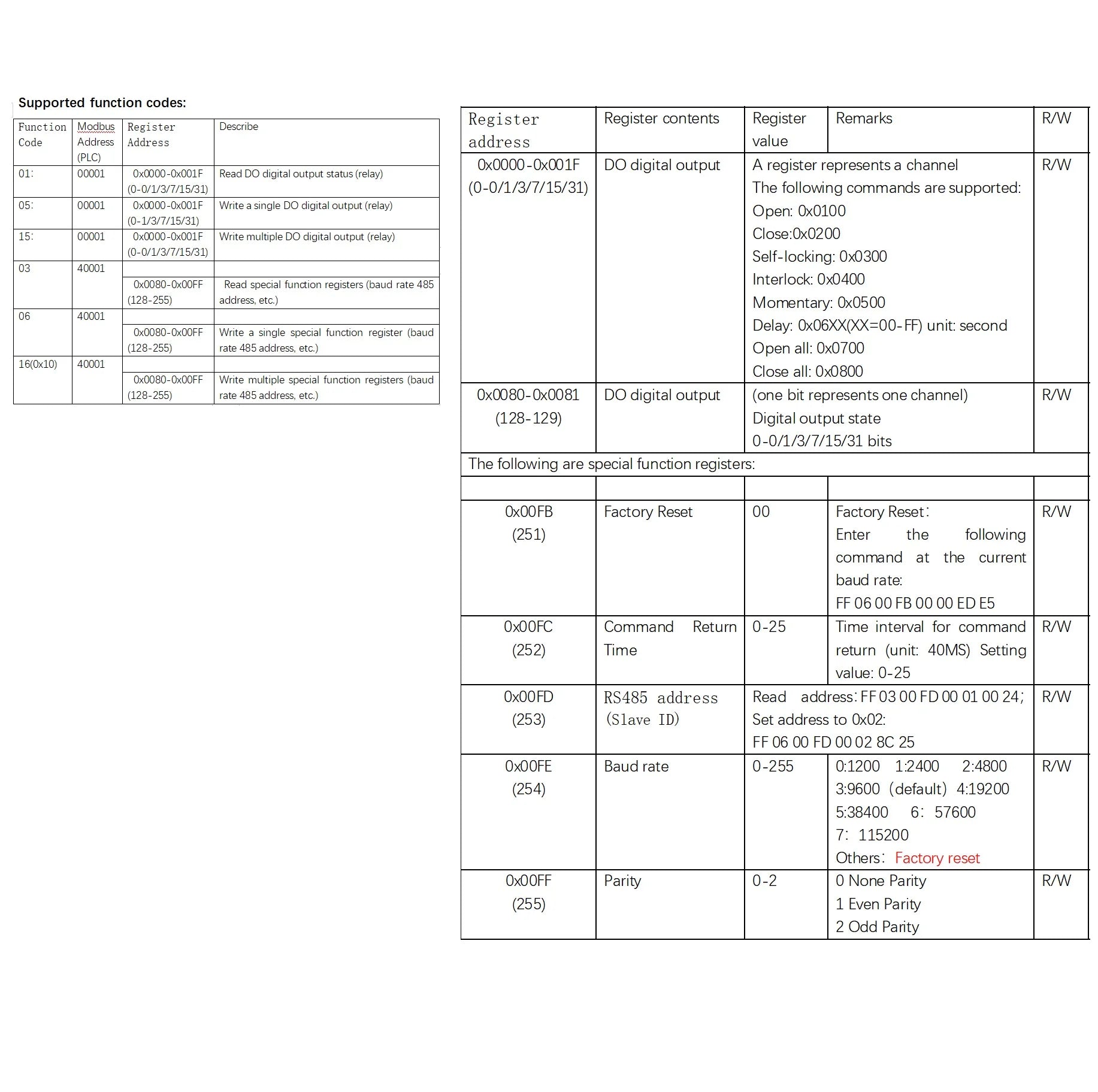 4: Standard MODBUS RTU command, Write 05/06/15/16, Read 01/03