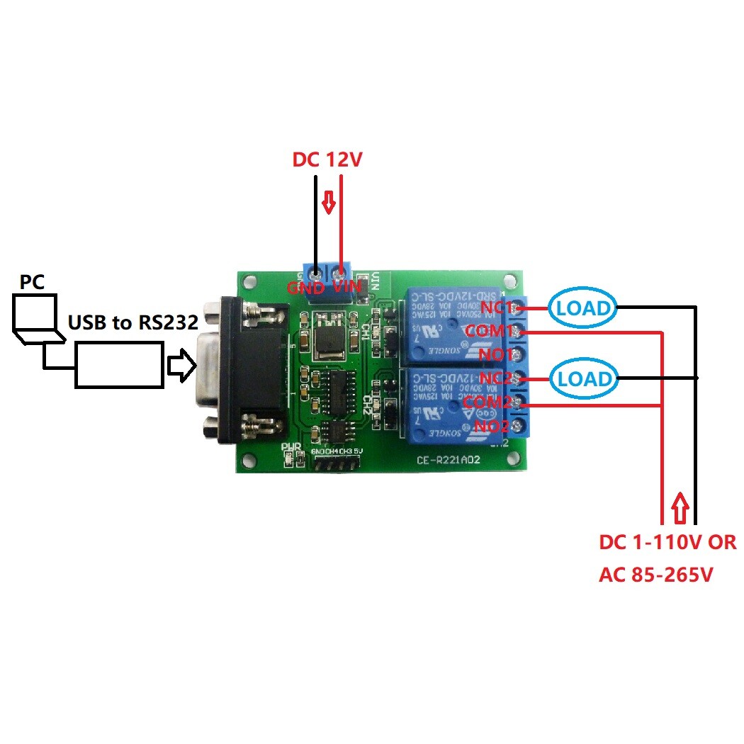 R221A02 DB9 Female/Male RS232 UART Switch Board DC 12V COM Serial port Relay Module PLC