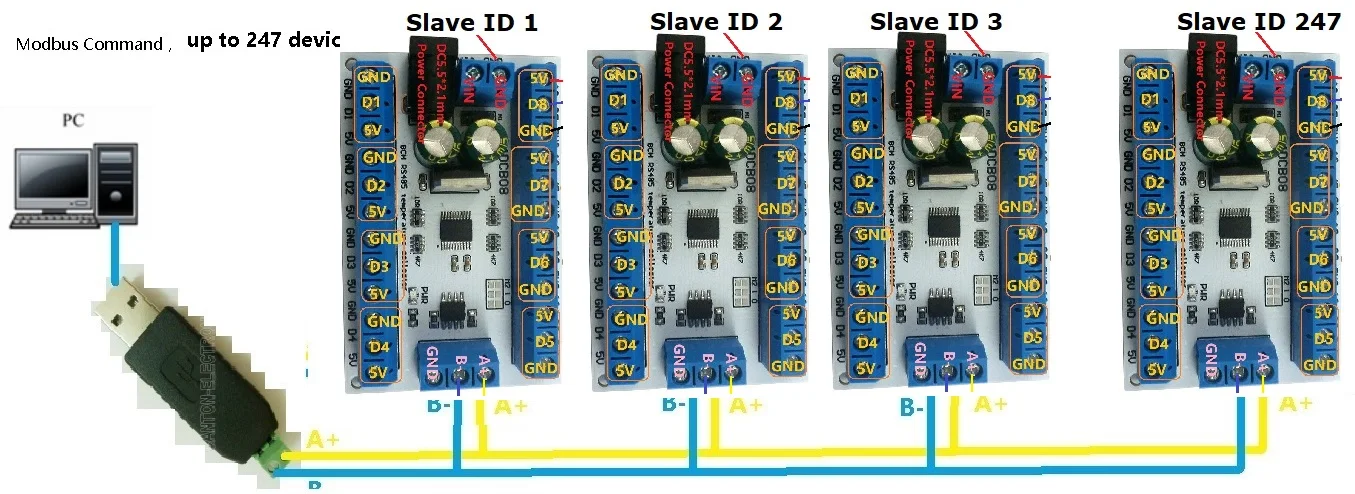 7 :Under the MODBUS command mode, it can support up to 247 devices in parallel