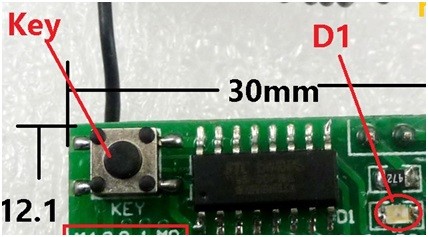 In normal operation mode, LED (D1) will be lit, when receiving a valid remote control (EV1527 / PT2262) key value, LED will flash.